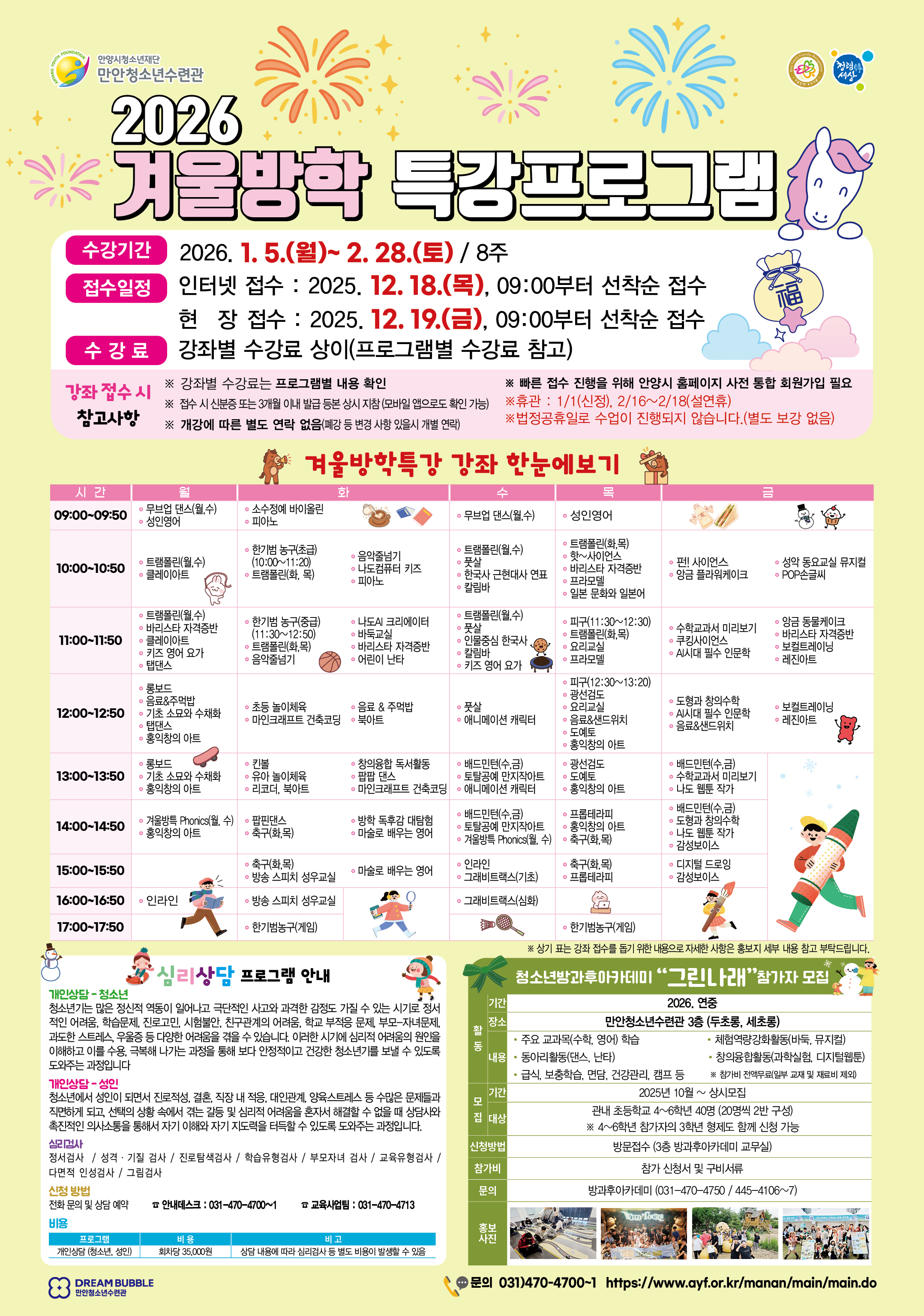 - 주민등본상 거주지가 안양시가 아닌 청소년 또는 성인 |